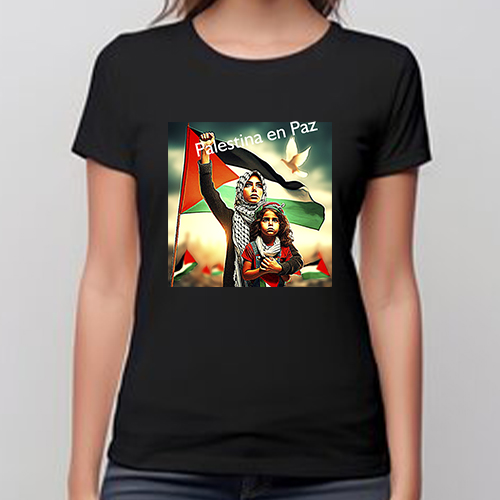 Camiseta reivindicativa por el derecho a la Paz del pueblo palestino y el derecho a que su lucha derive en el reconocimiento internacional como nación Palestina. Palestina libre, Palestina en Paz, Palestina Nación.