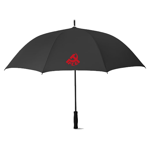 Paraguas del PCE en colores rojo o negro con símbolo y logotipo del Partido Comunista de España.